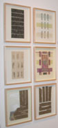 I am exploring the potential of square format canvases, saturated colour, and the development of a small suite of paintings on specific themes. For example, a sunrise suite is called "Waking the Goddess"; another suite is "Meditations in Blue and Yellow". I am working in a smaller format than before and I am trying to be less slap dash...I have a tendency to be very impulsive with my application of colour in the past; I am trying to be more meditative when I am doing it now. Lynn Mills "The Absolute Eye" Acrylic on a Set of 6 Slate Roofing Tiles with 4 Wooden Cupboards Ann Oakley "Creek in Winter" and "Cloud Studies" In this painting, "Creek in Winter", I am exploring ways of connecting my interior sense of order and space with the wonder and beauty of the world. I am also exhibiting 4 sky and sea studies (see photo at top of page) which are part of the same exploration.These are all done in chalk pastel. Patricia Seeley "Night