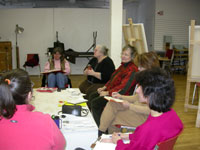 Jane billed her Enhanced Studio course as a way of pushing independent studio work to a new level. I was interested in doing that, and just generally in kick-starting myself out of a creative funk. My project for the course was to make some pairs of images that would constitute a creative, rather than a depressive response to the reality of being in Ontario instead of being on the Fundy Shore in Nova Scotia where my studio is located. It was interesting and helpful to be around other mature people creating a wide spectrum of images in a wide variety of styles. Important breakthroughs came from starting to use my computer, digital camera and printer as art tools, rather than just as a way of documenting work. Another breakthrough was reconnecting emotionally with the beauty of the trees outside my windows and the dramatic cliffs of the escarpment. Still another came from reconnecting with the colour possibilities inherent in the human figure -- the colour of life pulsing under the surface of skin. The course provided me with the support and encouragement I needed to get out of my creative block. It was great! |