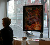 The core members of my winter semester Dundas Valley School of Art (DVSA) "Enhanced Individually Focused Studio" spent the months of Sept. and Oct. 2004 in my new Baroque class. The creative thrust for the "Enhanced Studio" flowed from the Baroque and neo-Baroque experience . The Baroque period is a focus of personal interest. I love the characters, so intellectual, so learned, such collisions of social class, and so often so over the top! It's like Buffy The Vampire Slayer which is fueled by histrionics combined with a learned society's conference which is propelled by an obsessive sense of inquiry all happening backstage at the Republican Convention. When painting neo-baroque we are painting our hearts out with a sense of the glare of publicity. And it is this "public presence" that makes Baroque painting something like post modernism and carries neo-baroque painting into the contemporary world.